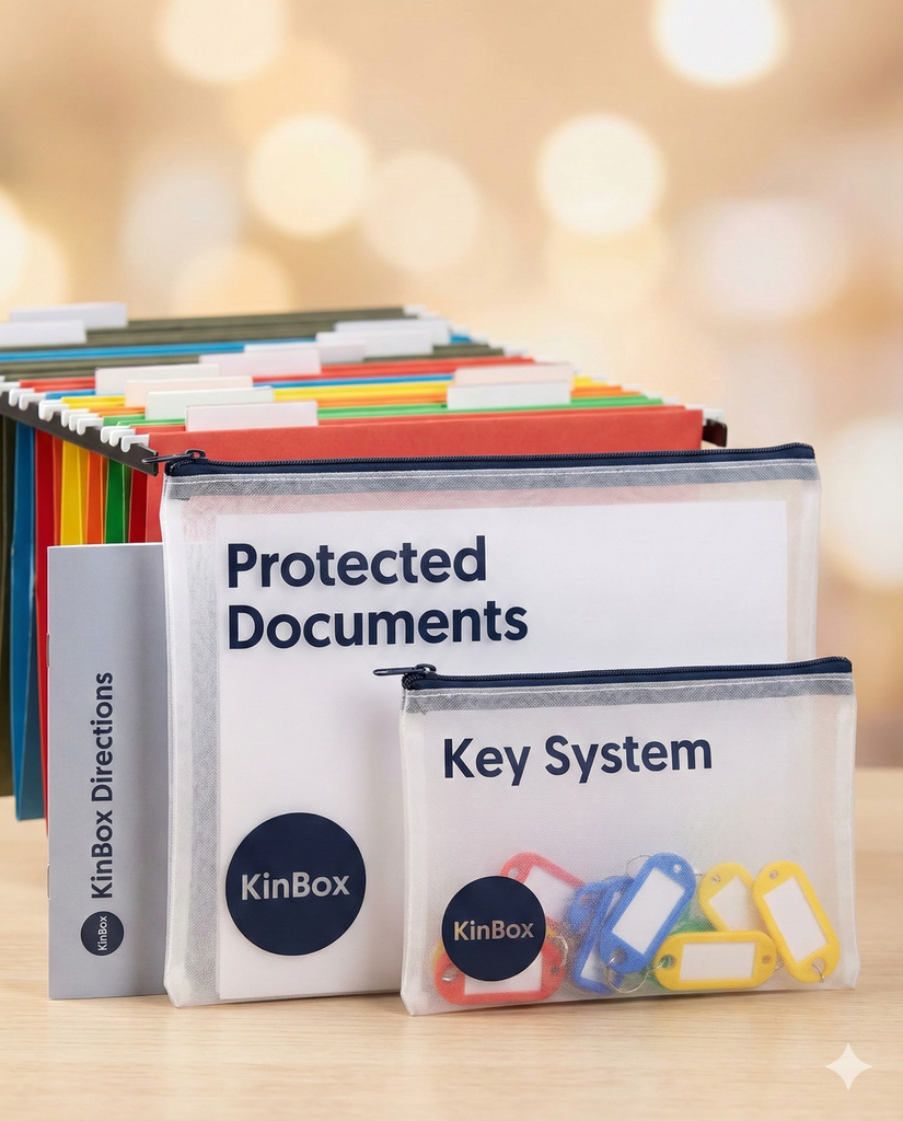 Already have a filing cabinet, lockable file safe or storage tub you love? The KinBox Organiser System gives you the complete next-of-kin organising system, ready to drop straight into whatever container you choose.
