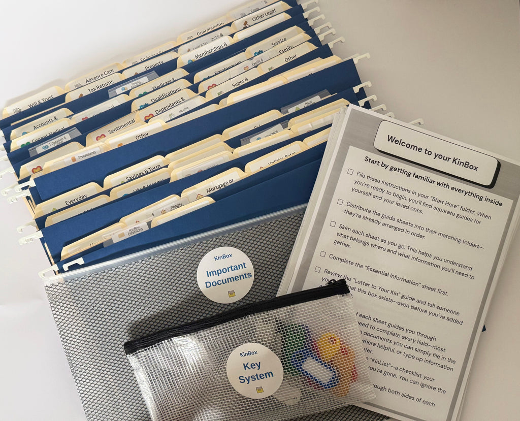 The KinBox Organiser System isn’t meant to be filled once and forgotten. Use it as your central hub – update it when you change jobs, move house, open new accounts or add to your family. It keeps the gap between your online life and your physical paperwork neatly closed, and gives everyone peace of mind that it’s all in one place.